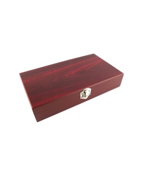 Set para vino en caja de madera rectangular, con 5 accesorios en metal; saca corchos (con navaja y destapador), vertedor de vino, tapón corta gota, corta cápsula de vino y. -