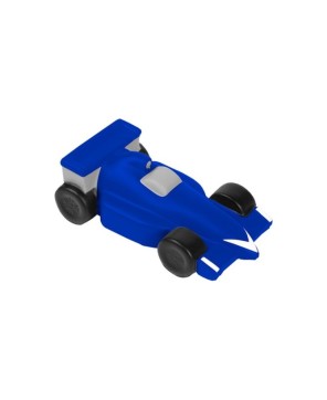 Figura antiestrés de auto de carreras tipo formula uno, con detalles en color blanco, gris y negro, fabricada en poliuretano.
