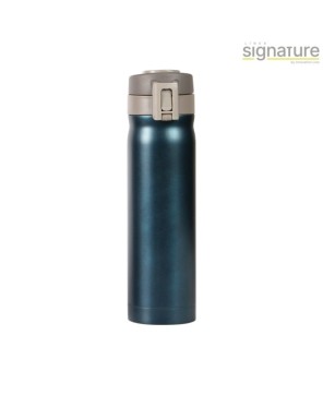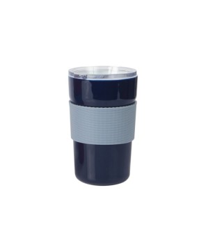 Vaso de acero inoxidable doble pared con tapa de polipropileno, fabricado en materiales de grado alimenticio, mantiene bebidas frías o calientes por un largo tiempo, no usar en microondas. Capacidad de 380 ml. Incluye caja de cartón individual.
