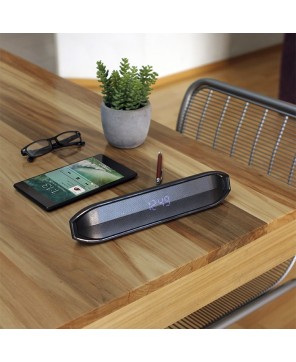 Audífonos Bluetooth bi-tono fabricados en plástico ABS, con estuche de carga ovalado. Incluye cable de carga USB y caja de cartón individual.